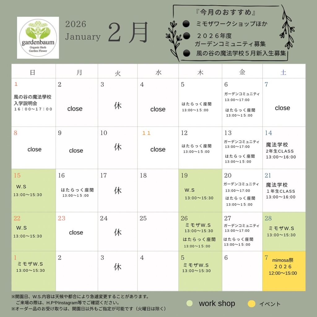 2月のカレンダー