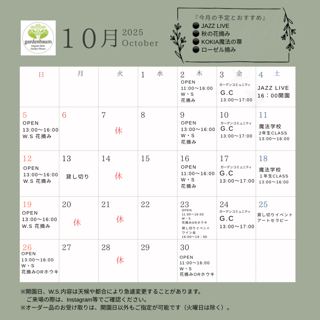 October10月スケジュール
